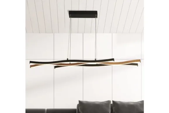 Hanglamp Bloom Swirl 32104-1BK van het merk Searchlight is een chique hanglamp. De hanglamp is een eigentijdse combinatie van zwart en hout. De wervelende lijnen van deze LED-hanglamp zorgen ervoor dat het licht op een unieke wijze door de kamer wordt verspreid. De LED-verlichting kan door middel van de schakelaar op een andere kleurtemperatuur geschakeld worden, de kleurtemperatuur kan geschakeld worden tussen 2300K (warm wit), 3000K (helder wit) en 4000K (neutraal wit). De lamp is niet voorzien van een memorie functie, de stand van de kleurtemperatuur zal standaard bij de laagste Kelvin beginnen. De lamp is tijdens het monteren in hoogte verstelbaar, hierdoor is de lamp geschikt voor in iedere ruimte!