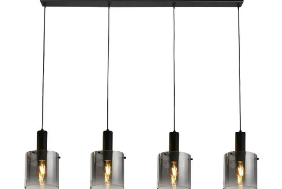 Hanglamp 88910-3BK Sweden van het merk Searchlight is een sfeervolle lamp voorzien van een rookglas lampenkamp met ombre effect. Deze lamp heeft vier lichtbronnen die je naast elkaar aan de plafondbalk kunt hangen.