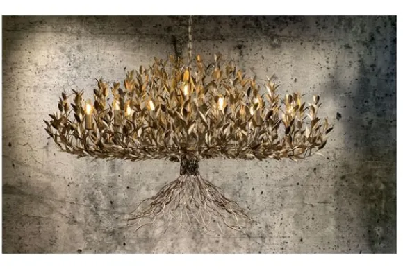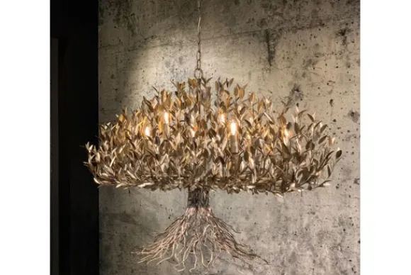 Hanglamp Aix LB039/12+1 ambachtelijk zilver van het merk Leclerq & Bouwman heeft metalen blaadjes in de kleur ambachtelijk zilver en heeft een ovale vorm. Onder de blaadjes zie je ook wortels, waardoor deze lamp echt het uiterlijk krijgt van een struik. Deze lamp is ook beschikbaar in anderen kleuren en vormen.