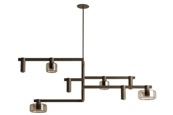 Hanglamp Palau van het merk Ztahl is een moderne designlamp met een uitgesproken geometrisch lijnenspel. Dankzij de meerdere armen en glazen lampenkappen ontstaat een speels en dynamisch effect dat perfect tot zijn recht komt boven een eettafel of kookeiland.