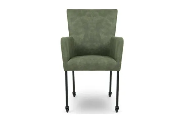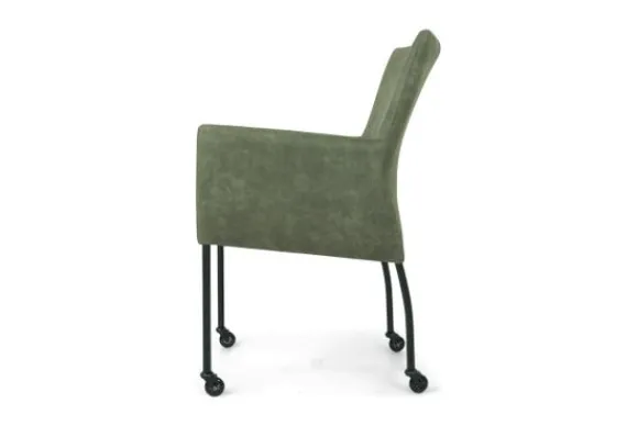 Deze stoel wordt standaard uitgevoerd met zwarte poten met wieltjes. Door deze wieltjes is de stoel makkelijk aan te schuiven aan tafel en makkelijk te verplaatsen.