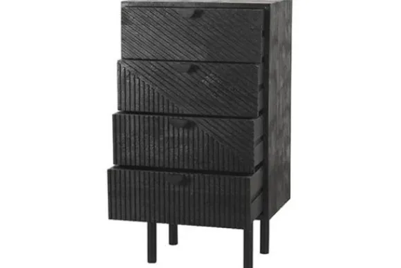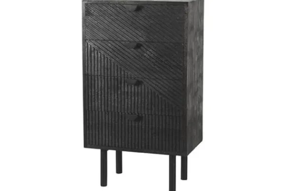 Ladekast Cotia Zwart AC-49.058 van het merk LABEL51 is een prachtig meubel uitgevoerd in zwart mangohout. Mangohout kun je herkennen aan de vele kleurschakeringen en ongelijkheden in het oppervlakte van het hout, waardoor geen enkel meubelstuk hetzelfde is. De kleuren in mangohout kunnen variëren van licht- tot donkerbruine tonen. Mangohout is een duurzame houtsoort. Ladekast Cotia kenmerkt zich door zijn mooie lijnwerk in de lades.