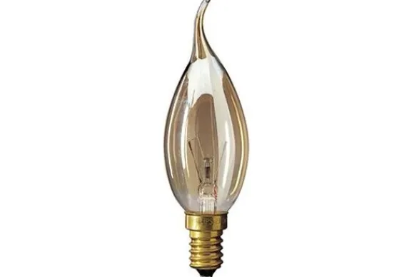 Lichtbron Tipkaars ambergoud van ETH is een kaarsvormige bulb van helder glas. Dit is een lichtbron van 25 watt, heeft een E14 fitting en is niet dimbaar.