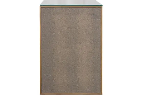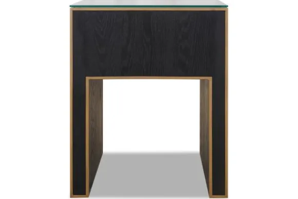Het glazen tafelblad voegt een hedendaags, luchtig element toe, terwijl de donkere binnenzijde zorgt voor een krachtig contrast. Perfect voor een hotel chic of modern interieur, waarin verfijning en glamour samenkomen.