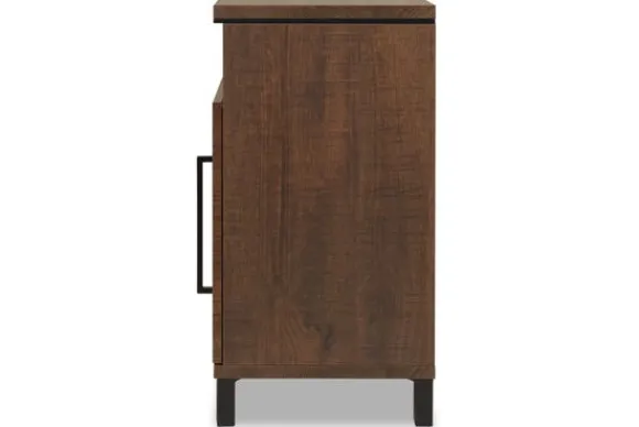 Achter het deurtje is voldoende ruimte om items in op te bergen, terwijl het open vak extra plek biedt voor spullen die je snel bij de hand wilt hebben. Dit maakt het nachtkastje zowel praktisch als overzichtelijk in gebruik.