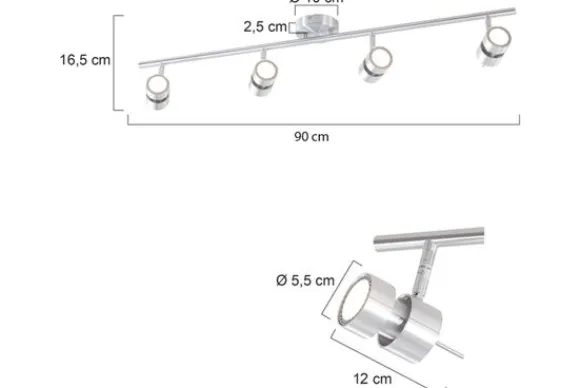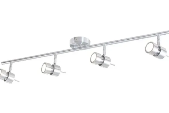 Plafondlamp Natasja 7904ST van het merk Steinhauer is een moderne 4-lichts plafondspot in geborsteld staal. De spot is verstelbaar (draai- en kantelbaar), zodat je zelf kan bepalen waar het licht naar toe schijnt. De plafondlamp is voorzien van viermaal een LED-module van maximaal 4 Watt en is inclusief Osram lampjes. Bij deze lamp zijn praktisch en decoratief verenigd in één design. De totale hoogte van de plafondspot is 18 cm en heeft een breedte van 90 cm.