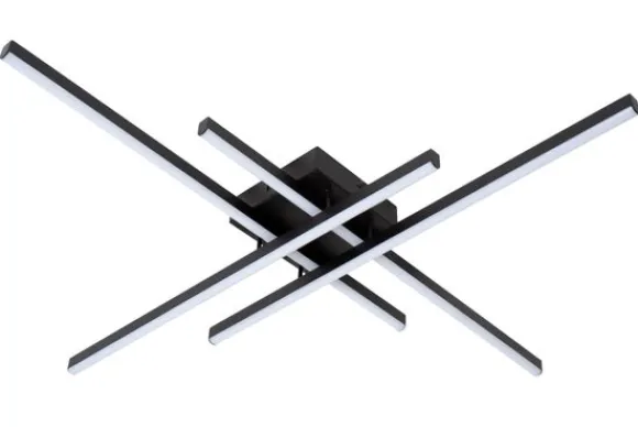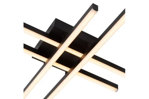 Plafondlamp Novak van het merk Lucide is een eigentijds kunstwerk aan je plafond. Deze lamp speelt met lijnen, licht en symmetrie, en brengt een moderne flair in elke ruimte. De vier lichtstaven kruisen elkaar als een dynamisch spel van schaduw en helderheid, wat zorgt voor een opvallend architecturaal effect.