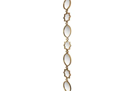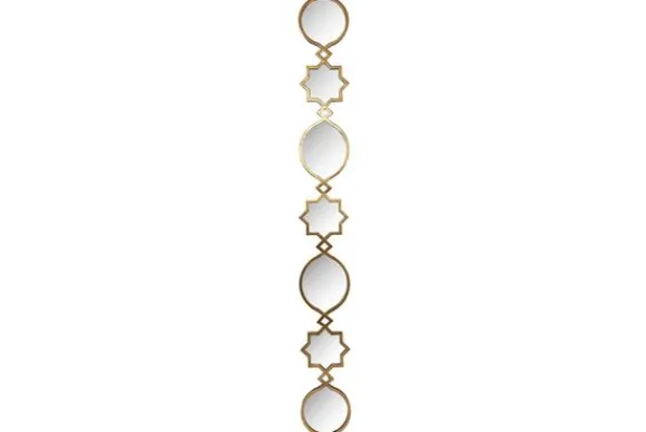 Spiegel Babice 212272 van het merk Richmond Interiors is vervaardigd uit messing en spiegelglas. Deze spiegel heeft een prachtig uniek ontwerp. Twee van de spiegels hebben een ronde vorming en twee spiegels hebben een ovale vorm en vier van de spiegels hebben een stervorm met een goudkleurig omlijsting.