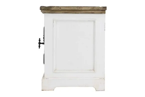 Tv-meubel Amanda TD 0016 van het merk Tower Living is gemaakt van hergebruikt grenen. Het geleefde hout geeft deze kast een romantische en landelijke uitstraling. Je kunt dit hout makkelijk schoonmaken met een zachte vochtige doek. Deze kast heeft diverse opbergmogelijkheden, namelijk één open vak, zes lades en twee deuren.
