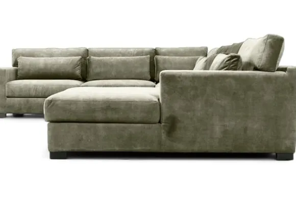 Hoekbank Frederique van het merk Givenchie is een toonbeeld van stijl, comfort en functionaliteit. Deze bank is standaard voorzien van een massief houten romp met stalen nosagvering. Op de nosag vering wordt een viltlaag gezet en daarbovenop zijn de losse zitkussens gelegd. Deze zitkussens zijn gevuld met koudschuim, met een kern van pocketveren waardoor de kussens nog veerkrachtiger zijn maar wel lekker comfortabel. De onderkant van de zitkussens zijn standaard voorzien van klittenband zodat deze niet kunnen gaan schuiven. Alle kussens zijn voorzien van ritsen waardoor je ze gemakkelijk kan laten reinigen.