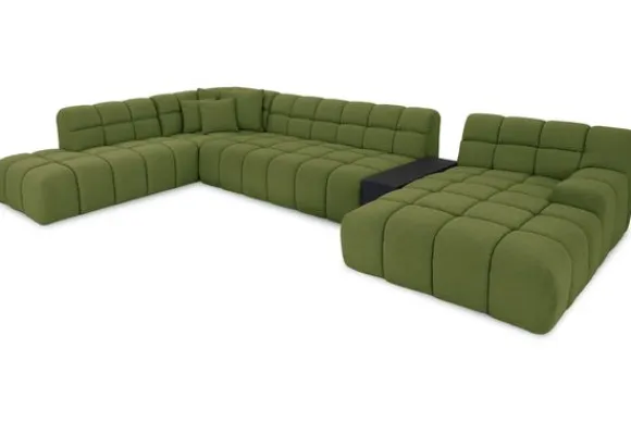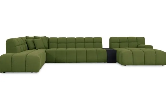 Je kunt kiezen uit verschillende materialen, waaronder stoffen als velvet en boucle. Daarnaast is de bank verkrijgbaar in uiteenlopende kleuren.