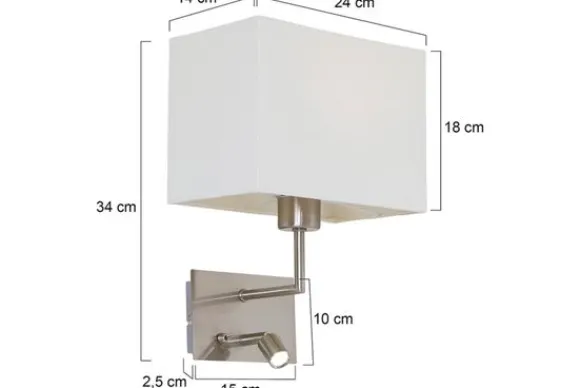 Wandlamp Nouveau 1472ST uit de serie Mexlite van het merk Steinhauer is een moderne wandlamp met leeslamp. Door deze leeslamp is de Nouveau ideaal om als bedlamp te gebruiken. De kap is gemaakt van stof en crème van kleur. De wandlamp wordt geleverd met een LED lichtbron voor de leeslamp, maar exclusief lichtbron voor de wandlamp.