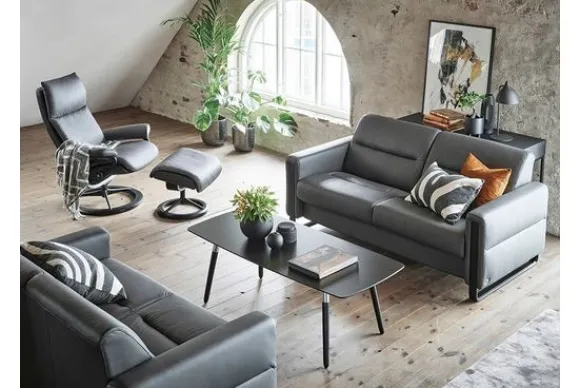 Bankstel Fiona van het merk Stressless is verkrijgbaar in alle kleuren en verschillende materiaalsoorten als stof, rundleder en kunstleder. De bank heeft een modern en strak design met elegante proporties. De gebogen rug is klassiek, heeft stijlvolle stalen elementen in de armleuningen en beschikt over mooie, eenvoudige lijnen met fijn horizontaal gestikte accenten voor een unieke look. Er is zorgvuldig nagedacht over de constructie, de hoeken en de kussens voor uitmuntend comfort. De zitkussens hebben ComfortZones om de zachtheid te verbeteren en ze aan uw zitpositie aan te passen.