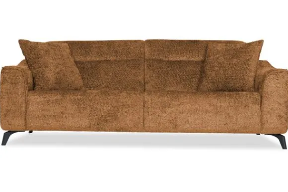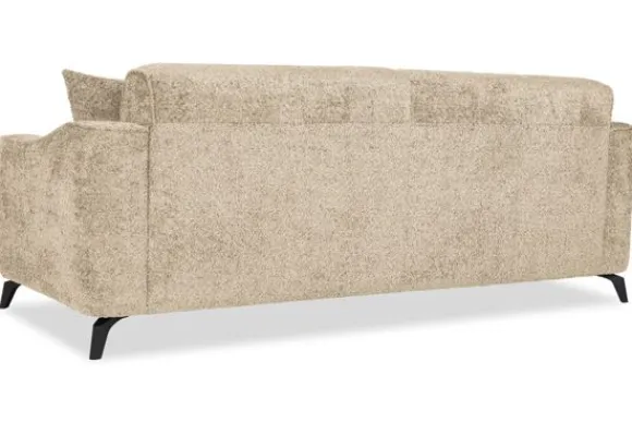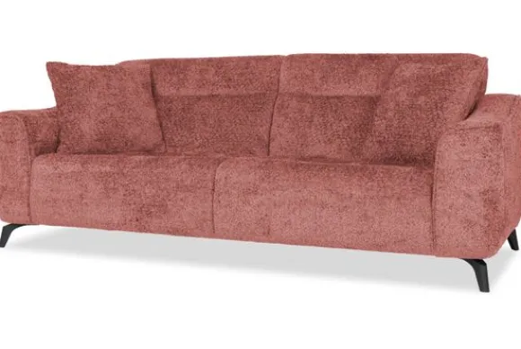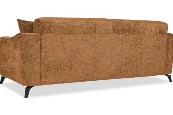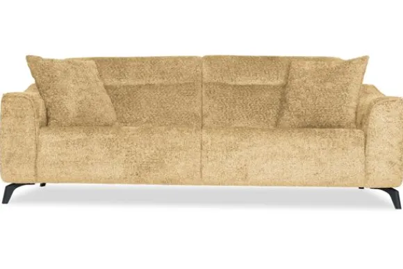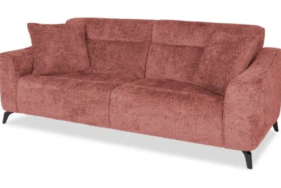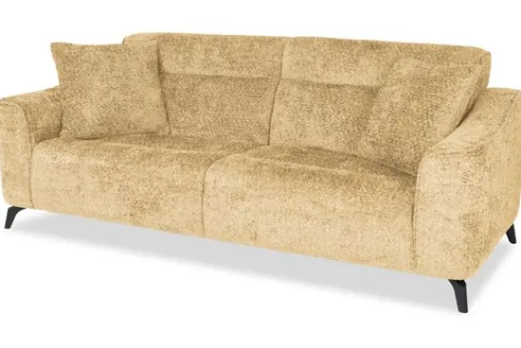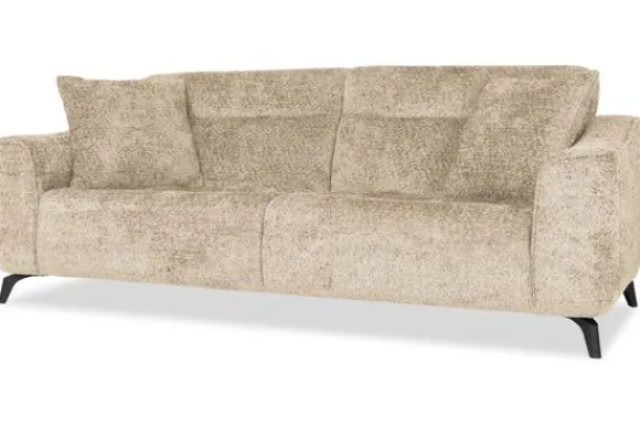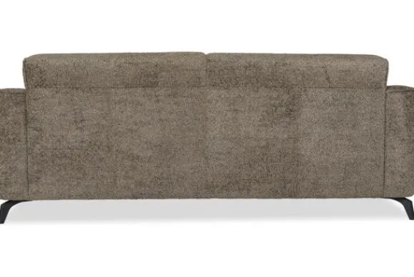 Met zijn glooiende armleuningen en speelse intrekking in de rug- en zitkussens is deze bank een stijlvolle toevoeging aan elke kamer. Sergio is uitgerust met nosag vering en een vulling van hoogwaardig koudschuim, wat zorgt voor langdurige ondersteuning en optimaal zitcomfort. De bank staat stevig op zwarte, metalen poten en is afgewerkt met een geknepen naad.