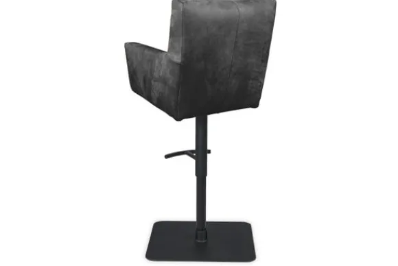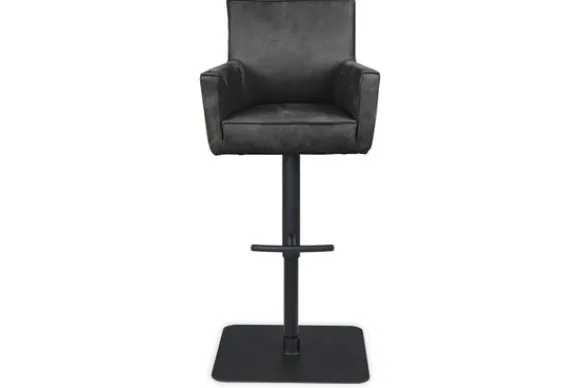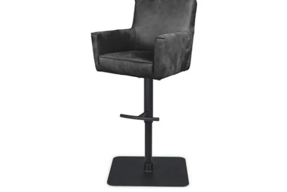 Deze barkruk wordt standaard geleverd met een geknepen naad, een gasveer systeem en een vierkante, zwarte schijf als voet.