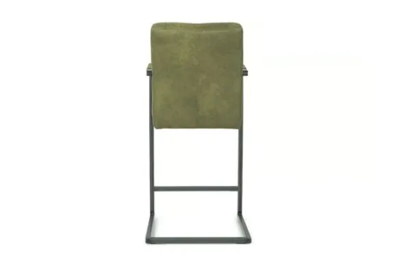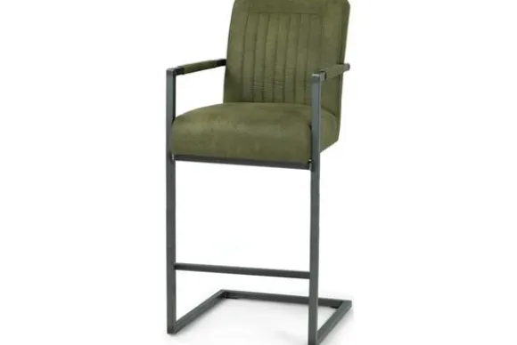Deze barkruk wordt standaard uitgevoerd met metalen poten in de kleur zwart die zijn voorzien van een voetensteun. Daarnaast heeft de kruk verticale stiksels in kader in de rugleuning en is deze voorzien van armleuningen.