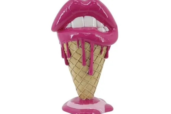 Beeld Ice Lips 211979 van het merk Richmond Interiors is een ijshoorntje met rozegestifte lippen als ijsbol. Het beeld is gemaakt van polyresin. Dit is een materiaalsoort dat bestaat uit gemalen steen dat wordt vermengd met vloeibaar kunsthars. Hierdoor is het materiaal sterk en kan er geen vocht indringen. Het materiaal is makkelijk schoon te maken zonder schoonmaakmiddelen en heeft een eindeloze levensduur.