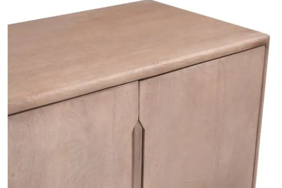 Dressoir Amalfi van het merk Livingfurn is gemaakt van mangohout en straalt een warme, natuurlijke sfeer uit. Het strakke ontwerp met subtiele handgrepen en de lichte houtkleur laat de nerven van het hout mooi naar voren komen. Achter de vier deuren vind je ruime vakken met planken waar je servies, tafellinnen of accessoires netjes in kunt opbergen.