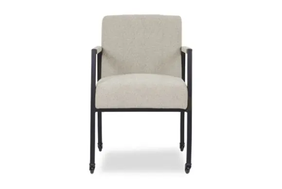 Deze eetkamerstoel wordt standaard uitgevoerd met skatewieltjes en met handgreep op de rugzijde. Deze handgreep kun je ook weglaten.