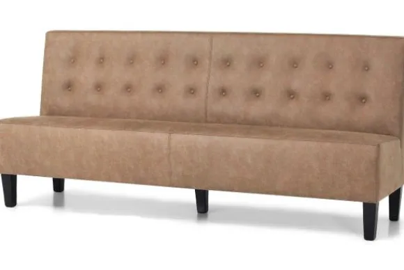 Eetkamerbank Borre van het merk Dutch Design is verkrijgbaar in meer dan 175 kleuren. Tevens is de bank leverbaar in stof, kunstleder en rundleder. Je kunt kiezen uit diverse afmetingen. Deze eetkamerbank komt met een dichte naad, houten poten, knopen in de rug en een dichte voor- en achterkant.