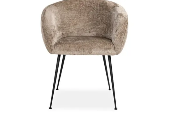 Eetkamerstoel Ruby 211912 Taupe Chenille van het merk Richmond Interiors straalt verfijnde zachtheid uit. De subtiel gebogen rug en elegante zwarte poten zorgen voor een luchtige en moderne uitstraling.