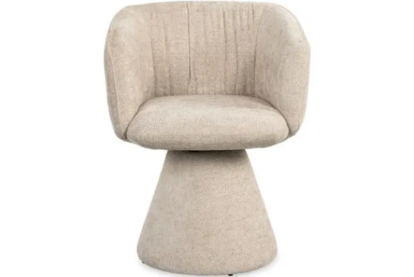 Eetkamerstoel Madeline 212904 van het merk Richmond Interiors is gestoffeerd met Unicorn 11 Cream. Unicorn is een zachte grof geweven stof. De stof heeft een prachtige glans en ziet er bij elke lichtinval anders uit, hierdoor heeft de stof een rijke uitstraling. De rugleuning loopt langzaam over in armleuningen, dit zorgt voor een comfortabele zit. De stoel heeft een unieke poot, deze is volledig doorgestoffeerd.