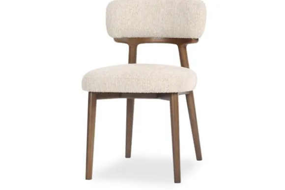 Eetkamerstoel Basker 214063 Natural Linear van het merk Richmond Interiors is een stijlvolle stoel met een warme en uitnodigende uitstraling. De zitting en rugleuning zijn bekleed met stof Eyelash 120 Natural die zorgt voor een zachte en comfortabele zitervaring.