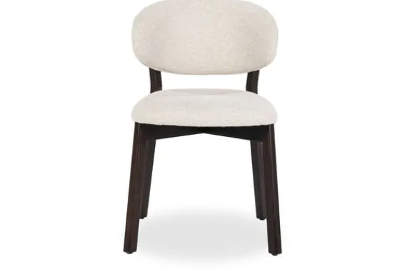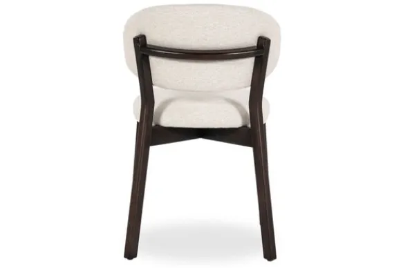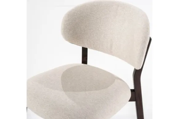 De zachte, neutrale bekleding in combinatie met de afgeronde rugleuning en het minimalistische design geeft Mikky een tijdloos karakter, geschikt voor zowel eetkamer als woonkamer.