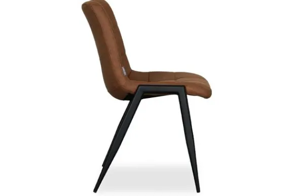 Eetkamerstoel Noor UK-30.506 van het merk LABEL51 is een hedendaagse stoel met een zachte bekleding van kunstleder in de warme kleur Cognac. De zitting heeft een speels ruitpatroon dat zorgt voor een luxe uitstraling en een stijlvol tintje. De zwarte metalen poten geven de stoel een tijdloze en elegante basis.