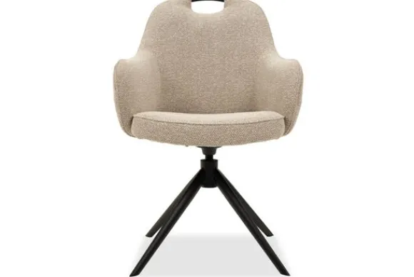 Eetkamerstoel Cronos van het merk Elysia is een comfortabele stoel met een handvat bovenaan de rugleuning. De ronde kuip sluit mooi aan en de armleuningen geven fijne steun.