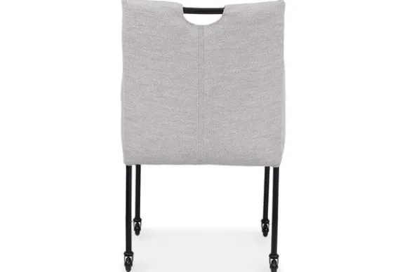 Eetkamerstoel Dinand wordt standaard geleverd met zwart metalen poten en skate wieltjes. Ook heb je de mogelijkheid om andere of geen wieltjes te selecteren.
