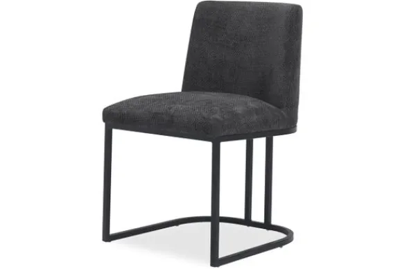 De rechte lijnen en afwezigheid van armleuningen geven de stoel een strakke vormgeving, terwijl de zachte stof zorgt voor een comfortabel zitgevoel. Perfect voor wie houdt van een interieur waarin contrasten samenkomen: stoer en elegant, robuust en verfijnd.