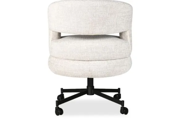 De afgeronde rugleuning met open rug geeft de stoel een luchtige en hedendaagse uitstraling. De royale zitting biedt optimaal comfort, terwijl het onderstel verkrijgbaar is in meerdere pootkleuren, met of zonder wieltjes. De zitvulling is uitgevoerd met koudschuim en pocketvering, wat zorgt voor veerkrachtig zitcomfort en langdurige ondersteuning.