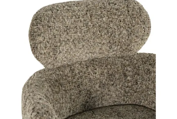De stoel is bekleed met een hoogwaardige stof in een warme, taupekleurige tint die moeiteloos past bij verschillende interieurs.