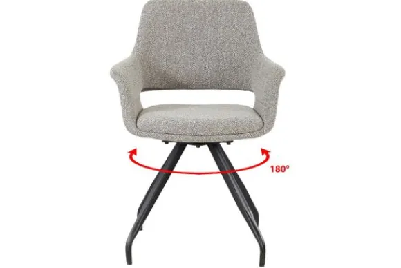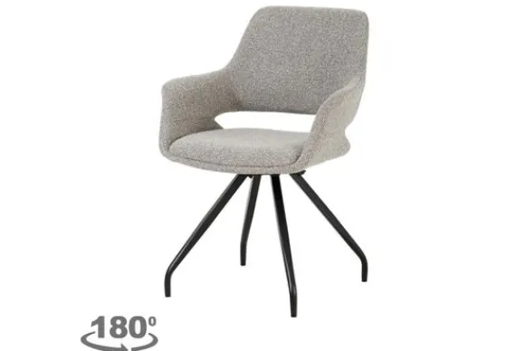 Het slanke metalen onderstel met zwarte poedercoating zorgt voor een luchtige uitstraling, terwijl het draaimechanisme van 180 graden bijdraagt aan het gebruiksgemak. Deze draaifunctie maakt de stoel extra praktisch aan de eettafel, zonder dat je de stoel hoeft te verplaatsen. De combinatie van het geweven textiel en het strakke onderstel maakt deze stoel ideaal voor een Scandinavisch interieur waarin rust en eenvoud centraal staan. Tegelijkertijd sluit het eigentijdse silhouet perfect aan bij een modern ingerichte ruimte met een luxe uitstraling.