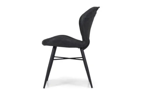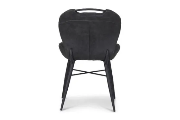 Eetstoel Bray van het merk Olijk verkrijgbaar in de kleur antraciet en is bekleed met microvezel. Deze eetstoel heeft zwarte metalen poten.