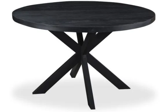 Eettafel Kala van het merk Livingfurn is een stoere eettafel met een rond blad en een krachtige uitstraling. De tafel staat op een centrale spinpoot, waardoor je rondom eenvoudig eetstoelen kunt plaatsen. Dankzij de ronde vorm is deze eettafel geschikt voor verschillende ruimtes en past hij goed binnen een modern of industrieel interieur.