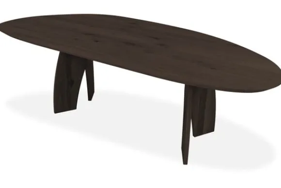 Met een dikte van 4,4 cm – waarvan 2 cm opgedikt – oogt de tafel luchtig, maar voelt ze tegelijkertijd solide aan.