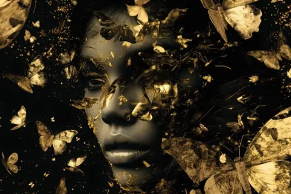 Online Glasschilderij Vrouw met Gouden Vlinders Rechts 110160BS-646 Schilderijen