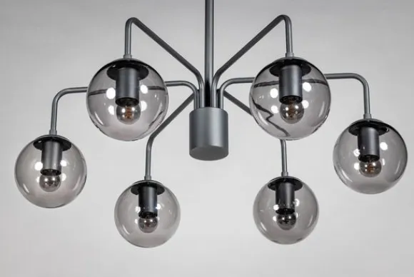 De lamp wordt exclusief lichtbron geleverd. Doordat de lichtbron niet meegeleverd is, kun je zelf bepalen hoeveel licht je wilt en in welke kleur. Deze lamp is uitgevoerd met 6 E27 fittingen.