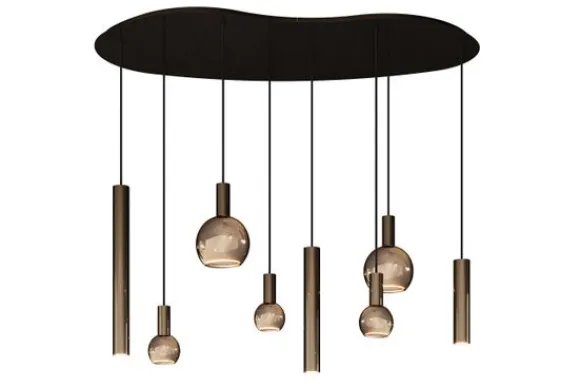 De lamp is voorzien van vijf E27-fittingen en drie GU10-fittingen (50 mm). Door de combinatie van meerdere lichtpunten ontstaat een dynamisch lichteffect dat zowel functioneel als sfeervol is.