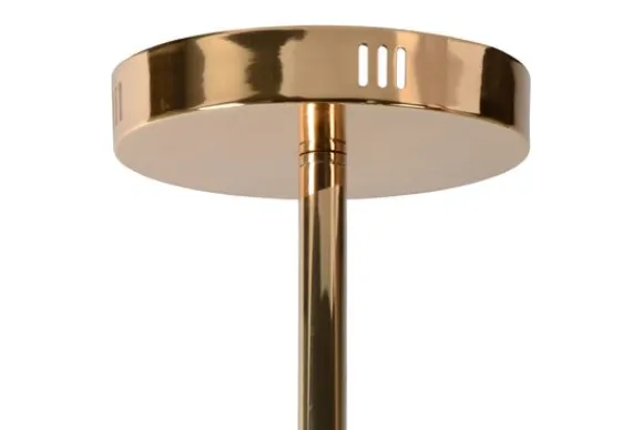 Hanglamp Alara van het merk Lucide heeft zes volmaakte bollen van echt glas en een goudkleurige basis. De hanglamp is verlichting met een luxueus karakter. De zes lichtpunten zijn verspreid over de elegante staaf van hoogwaardig metaal. Ze kiezen elk hun eigen richting. Een fijnere metalen, vergulde staaf verbindt de ophanging met de glazen bollen. Die fijne verbinding mondt uit in een G4-fitting, netjes in het midden van elke bol. Daar geven de ledjes hun warm wit licht (2700K) vrij. Door de speelse spreiding van de lichtpunten geniet je van een zachte gloed die alle hoeken van je kamer oplicht. Alara is 120 centimeter hoog met een diameter van 27 centimeter.