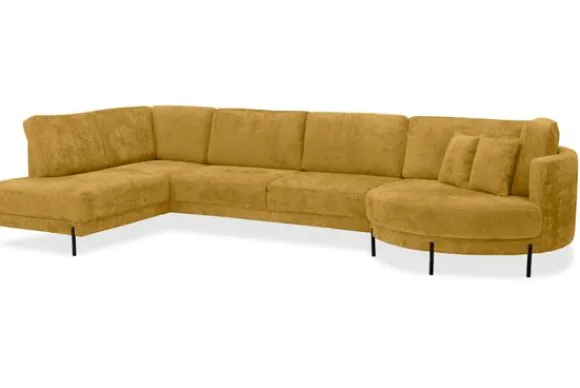 Hoekbank Nayla van het merk Givenchie is een moderne bank met ronde en rechte elementen.