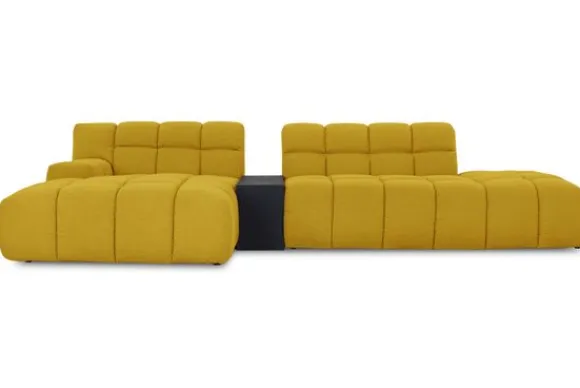 Je kunt kiezen uit verschillende materialen, waaronder stoffen als velvet en boucle. Daarnaast is de bank verkrijgbaar in uiteenlopende kleuren.