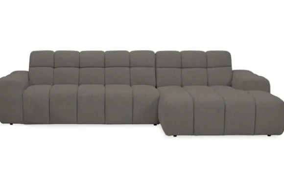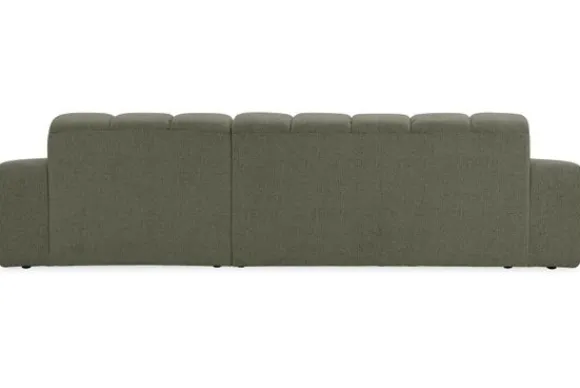 Bankstel Treviso van het merk Moderno is een bank met geblokte zit- en rugkussens en een zitting die doorloopt tot net boven de grond.