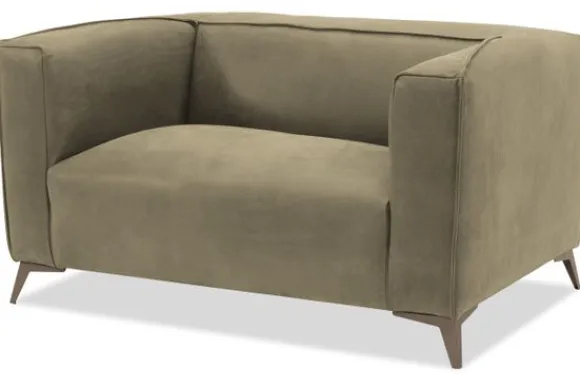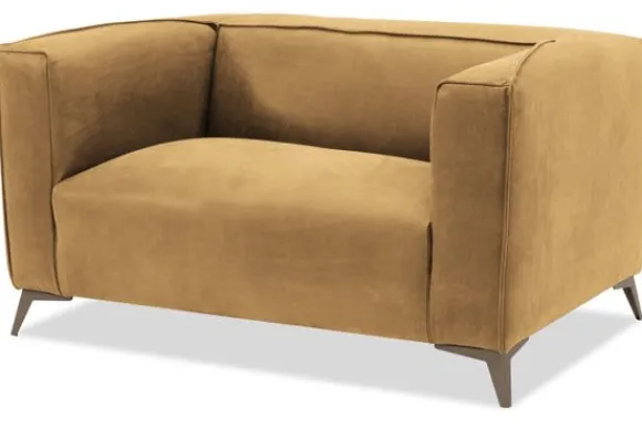 Loveseat Manon van het merk Moderno heeft een strak design en een moderne uitstraling. Dankzij de metalen pootjes en de strakke belijning oogt de fauteuil ruimtelijk en stijlvol.