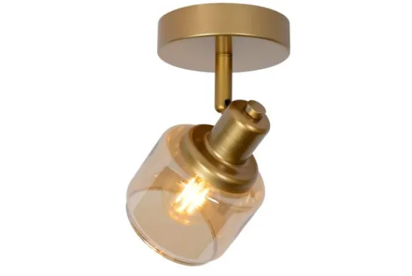 De amberkleurige glazen kap zorgt voor een warme, diffuse lichtverspreiding, terwijl de 360 graden draaibare en kantelbare arm maximale flexibiliteit biedt in het richten van het licht. Dankzij de E14 fitting en de mogelijkheid om de lamp te dimmen via een externe dimmer, creëer je eenvoudig de gewenste sfeer.