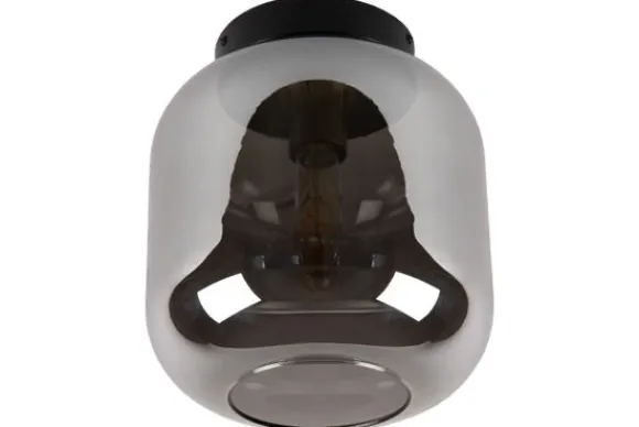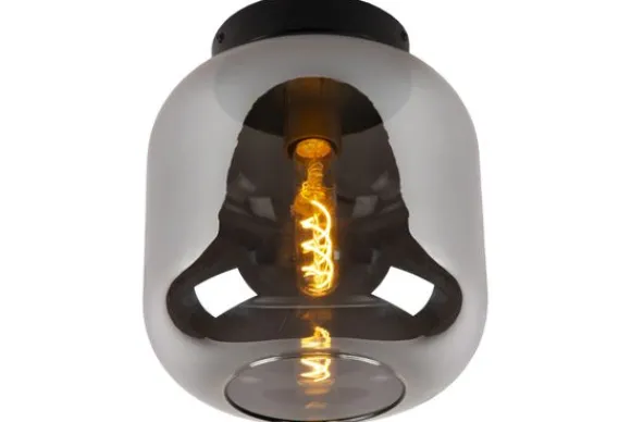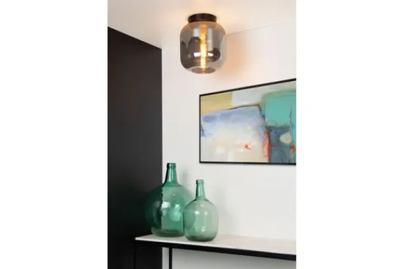 Plafondlamp Joanet van het merk Lucide zorgt voor een sfeervolle en evenwichtige verlichting in elke ruimte. De lamp heeft een elegante glazen stolp van fumé glas die onderaan open is, zodat het licht mooi en natuurlijk verspreid wordt. Perfect voor de woonkamer, slaapkamer, hal of zelfs het gastentoilet.