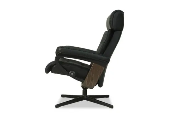 Relaxfauteuil Erik Cross van het merk Stressless is verkrijgbaar in alle kleuren. Tevens is de fauteuil leverbaar in stof en rundleder. Je kunt bij deze fauteuil kiezen uit diverse maten zoals Small, Medium en Large. Deze fauteuil heeft een Plus en Glide Systeem: Aan beide zijden van de fauteuil zit een knop waarmee je de weerstand van de stoel kan aanpassen naar eigen behoefte. Door de knoppen in tegengestelde richting te draaien stel je jouw ideale relaxpositie samen. Op die manier krijgt de nek en de onderrug goede onderstuening. Door de rugleuning naar voren te buigen activeer je de slaapfunctie. Op het moment dan je weer rechtop komt stelt de stoel zichzelf weer bij naar de normale stand.