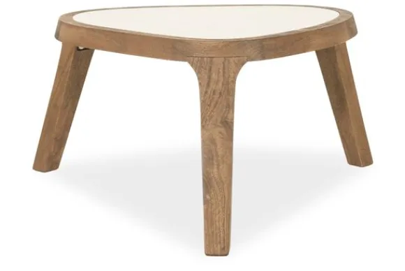 Salontafel Fred 96417 small van het merk Eleonora is een meesterwerk in eenvoud en verfijning. De unieke, afgeronde driehoekige vorm geeft een speels en hedendaags karakter aan je interieur, terwijl het elegante Botticino marmeren blad een luxueuze en tijdloze uitstraling toevoegt. De subtiel glanzende marmerstructuur lijkt te leven in het licht. Het onderstel van massief mangohout zorgt voor een warme, aardse basis. De natuurlijke nerven lopen sierlijk door het hout en benadrukken het ambachtelijke karakter van deze tafel. De brede, schuingeplaatste poten geven een stoer accent en zorgen voor stabiliteit zonder afbreuk te doen aan het lichte, open design.